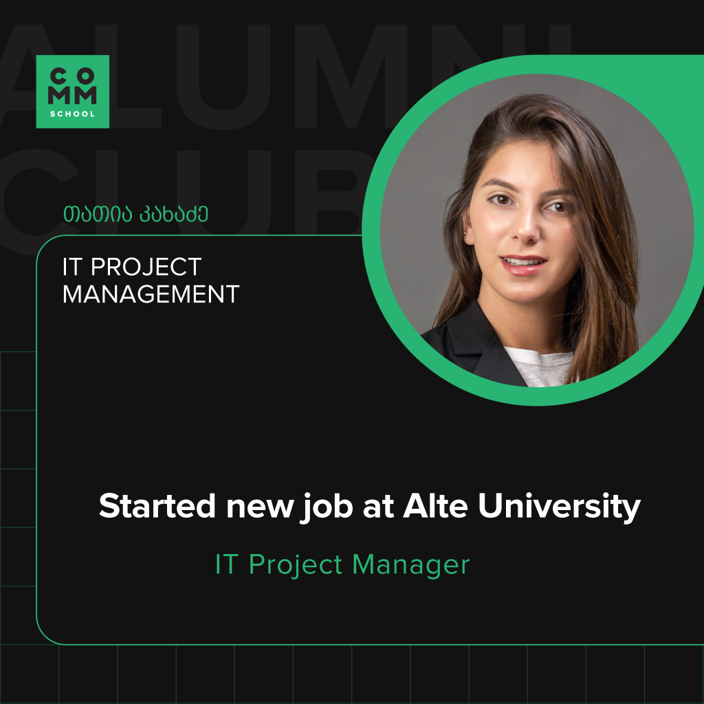 კურსის დასრულების შემდეგ კიდევ უფრო დიდი ინტერესი გამიჩნდა IT პროექტების მართვის და გადავწყვიტე კარიერა სწორედ ამ მიმართულებით გამეგრძელებინა. კურსმა თეორიულ ცოდნასთან ერთად, მომცა პრაქტიკული უნარები, რის შედეგადაც კურსის დასრულებიდან ზუსტად 1 თვეში დავსაქმდი IT Project Manager-ის პოზიციაზე ალტე უნივერსიტეტში.